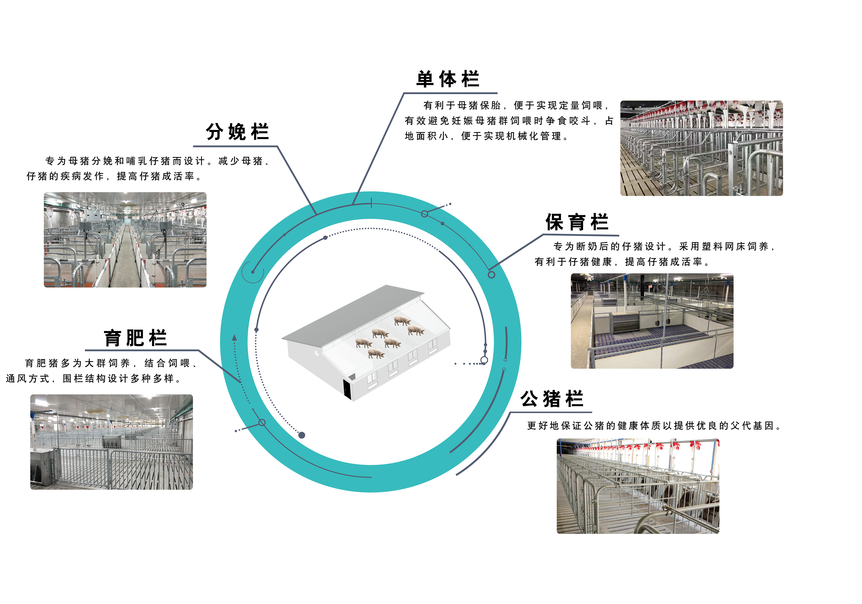 根據規模化養豬場的生產流程、豬的生理特征及習性,我們為不同階段的豬只量身打造了...